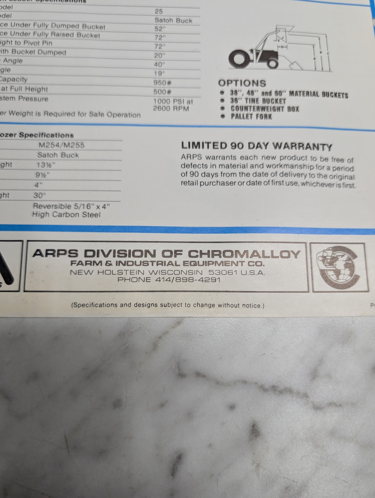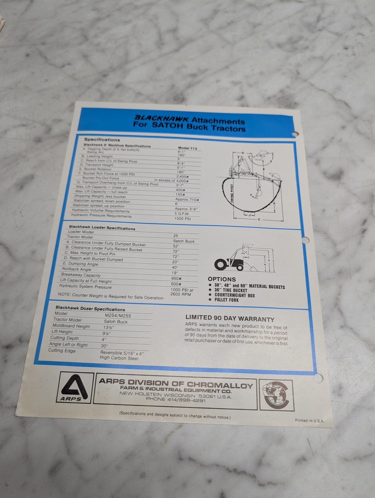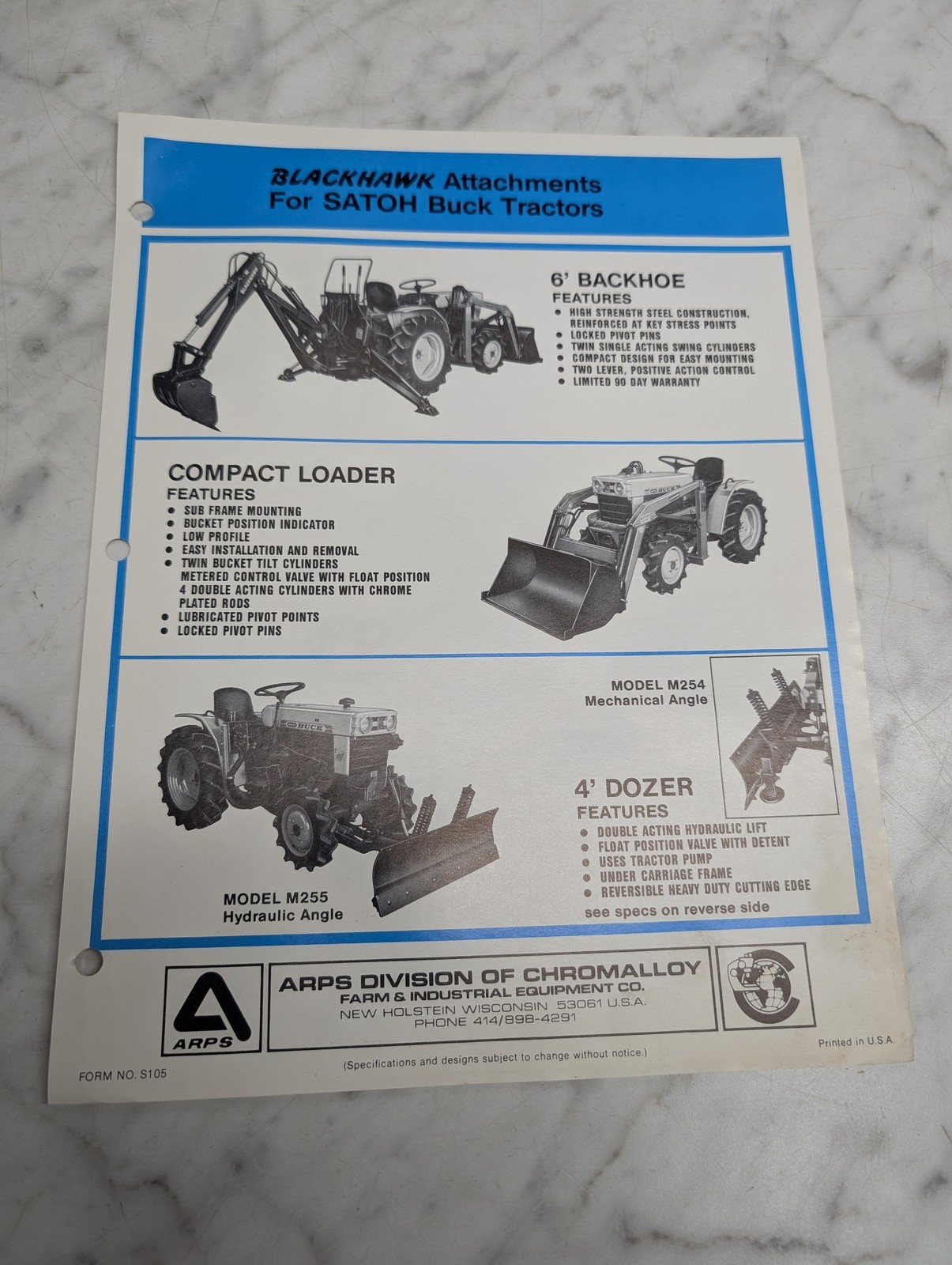 Arps Blackhawk Satoh Buck Tractors 6 Backhoe Compact Loader 4 Dozer Form No