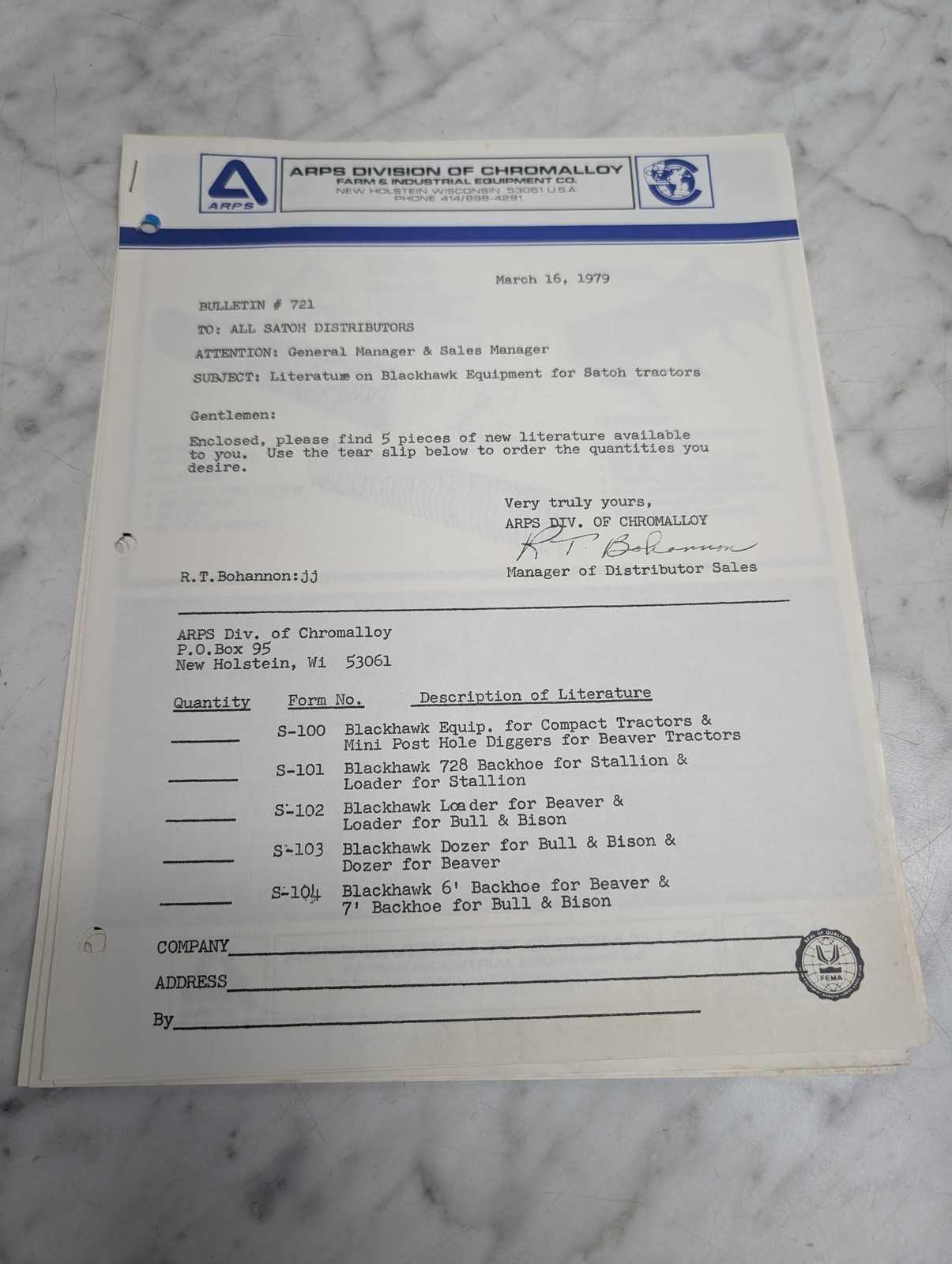 Arps Bulletins Literature Blackhawk Equipment Satoh Tractors 1975 – 1980