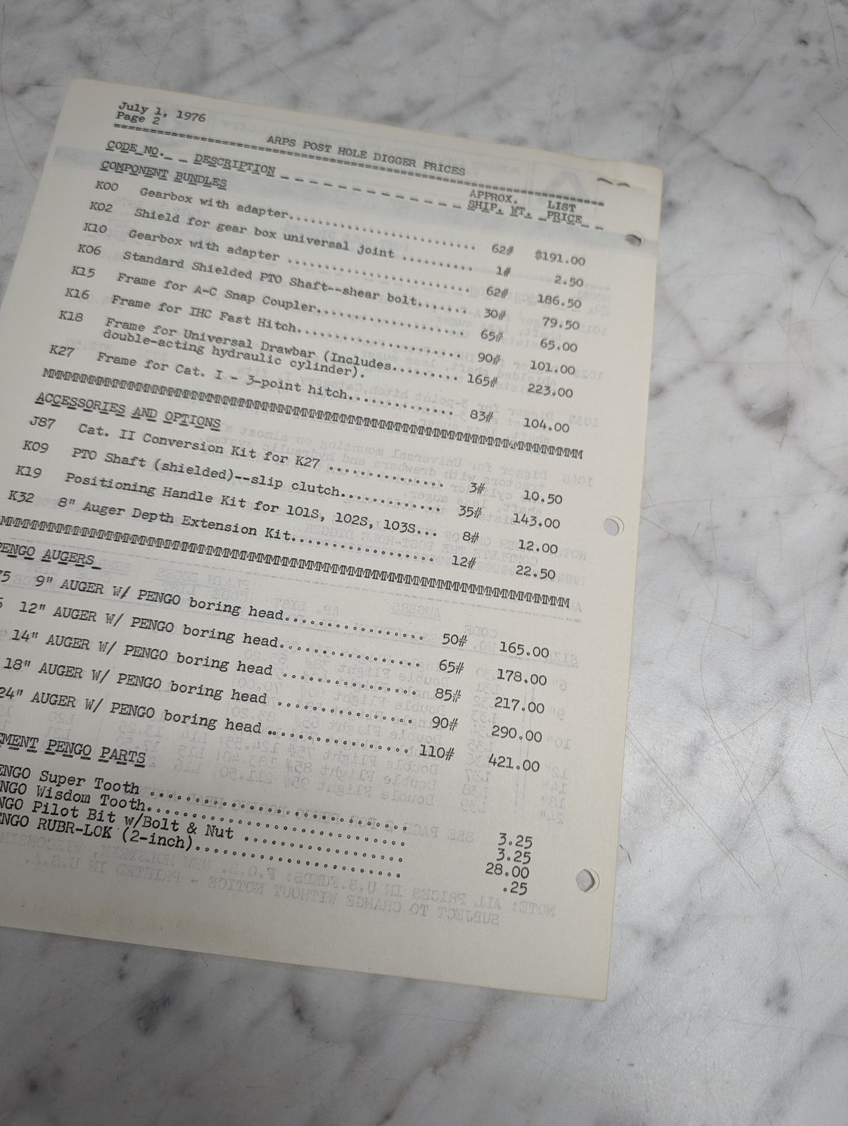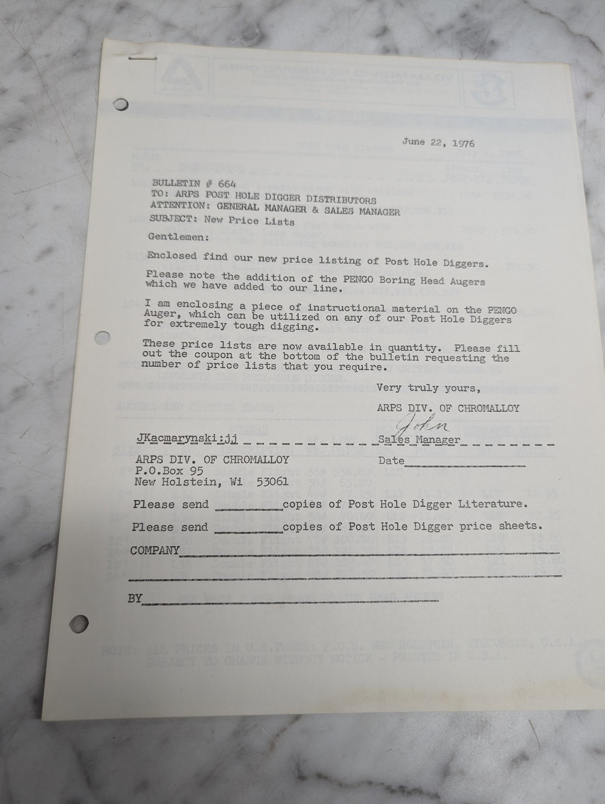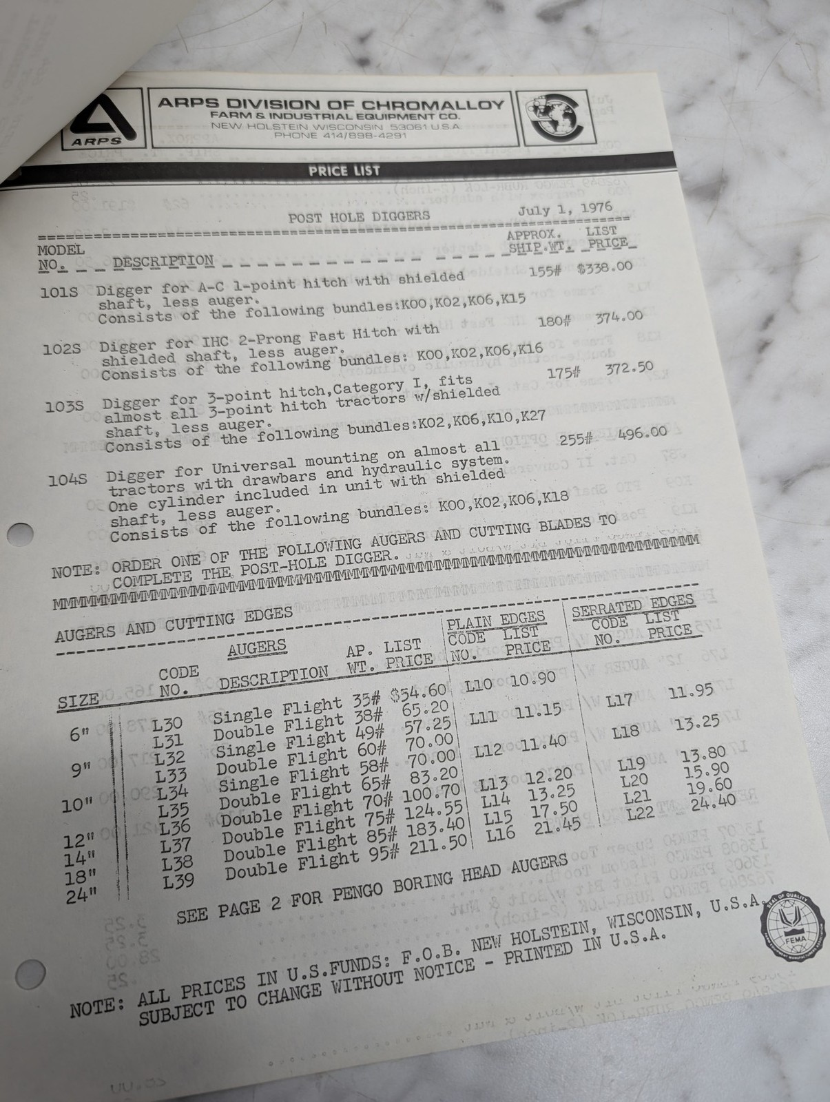 Arps Div Of Chromalloy Bulletin 664 Post Hole Diggers New Price Lists June 22 19