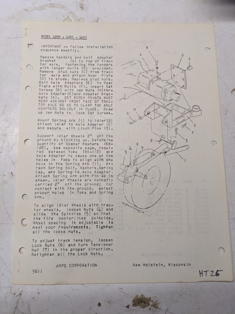 Arps Half Track Adapter Part List Installation John Deere Tractor Ht-25 420 W I