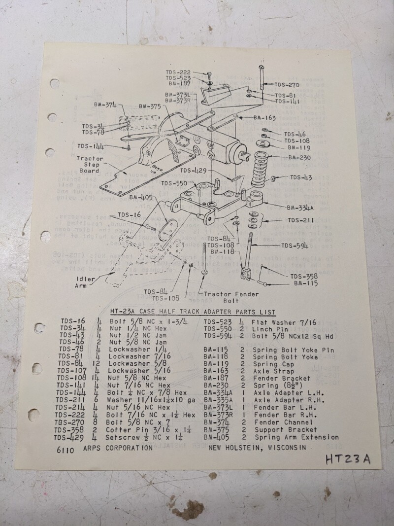 Arps Half Track Adapter Parts List Installation Case Tractor Ht-23A Attachment