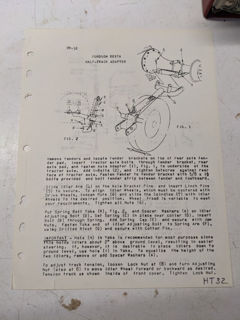 Arps Half Track Adapter Parts List Installation Fordson Dexta Tractor Ht-23