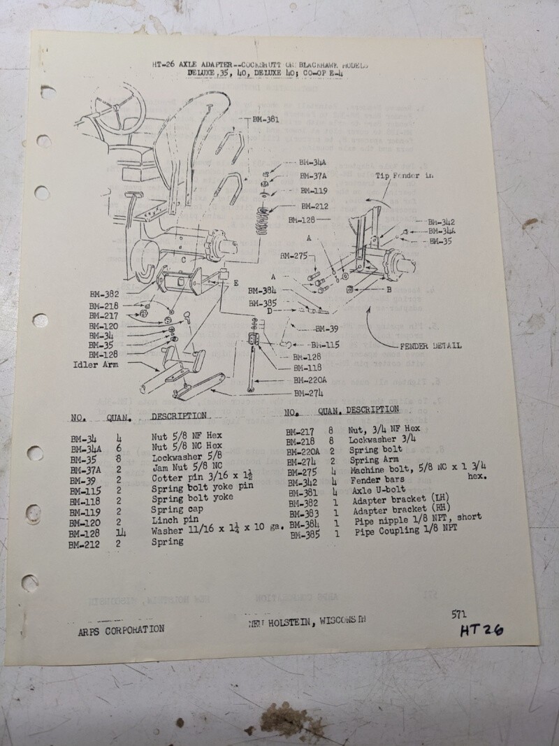 Arps Half Track Axle Adapter Part List Blackhawk Deluxe 35 40 Tractor Ht-26