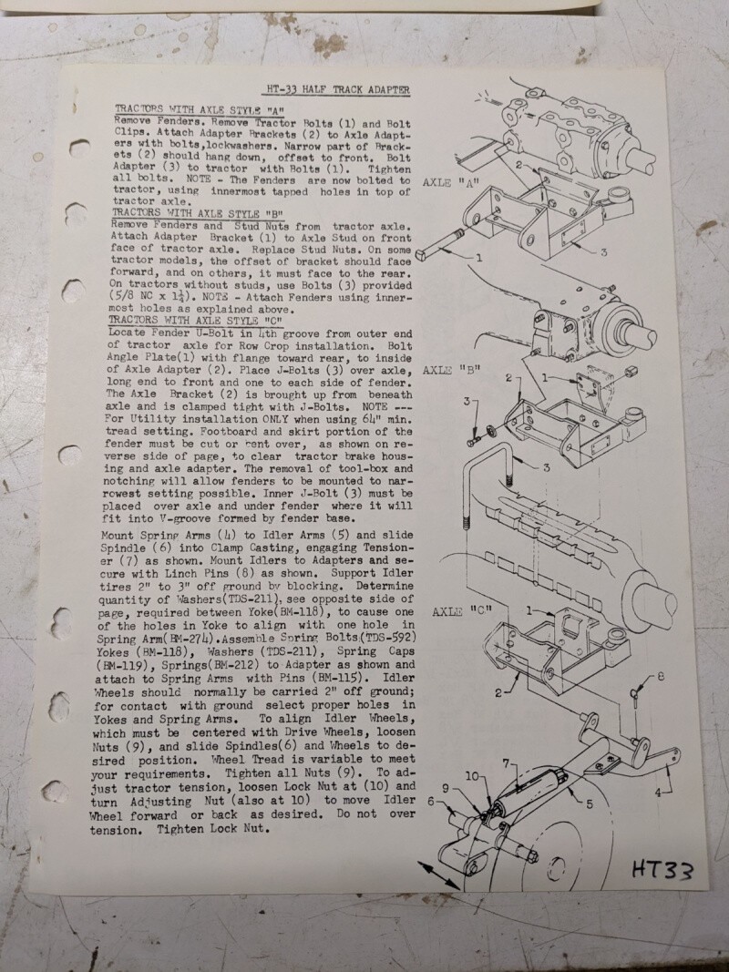 Arps Half Track Axle Adapter Part List Compact Tractors Ht-33 Attachment