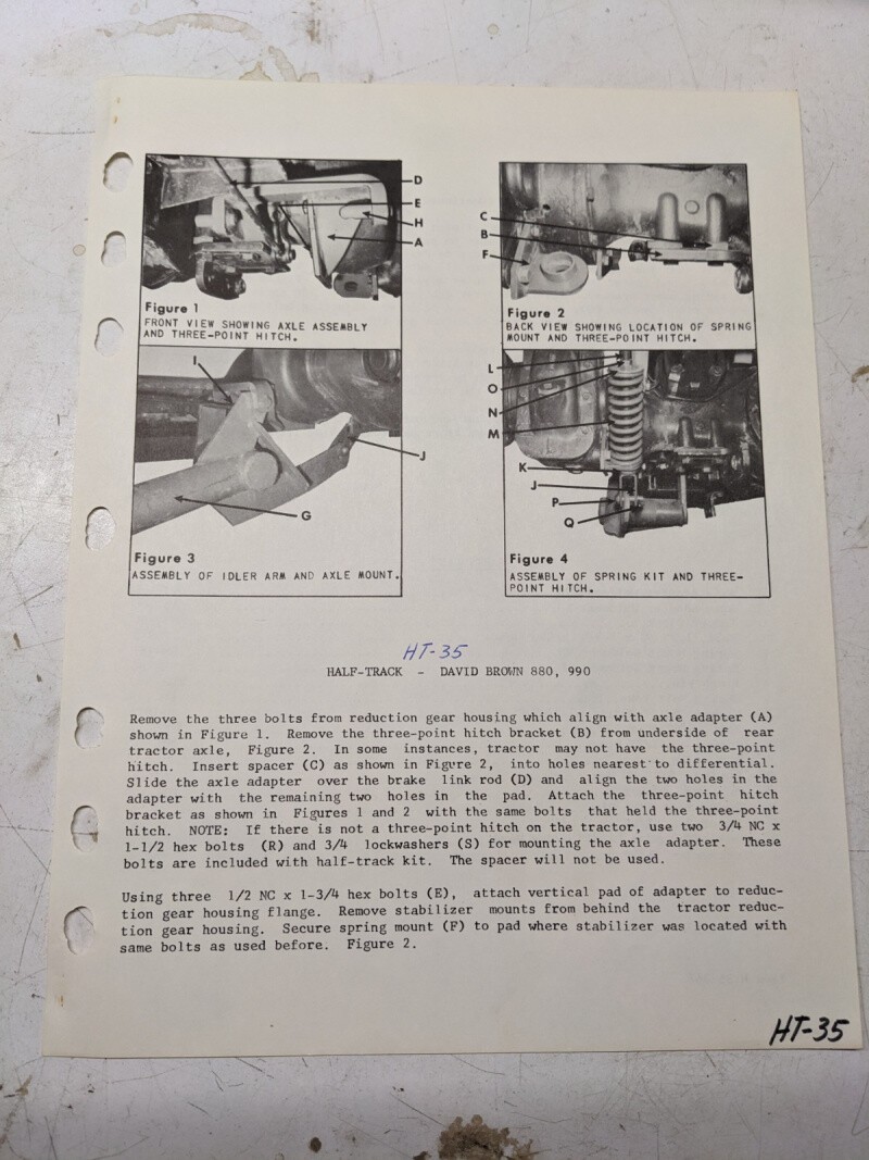 Arps Half Track Axle Adapter Part List David Brown 880 990 Tractor Ht-35