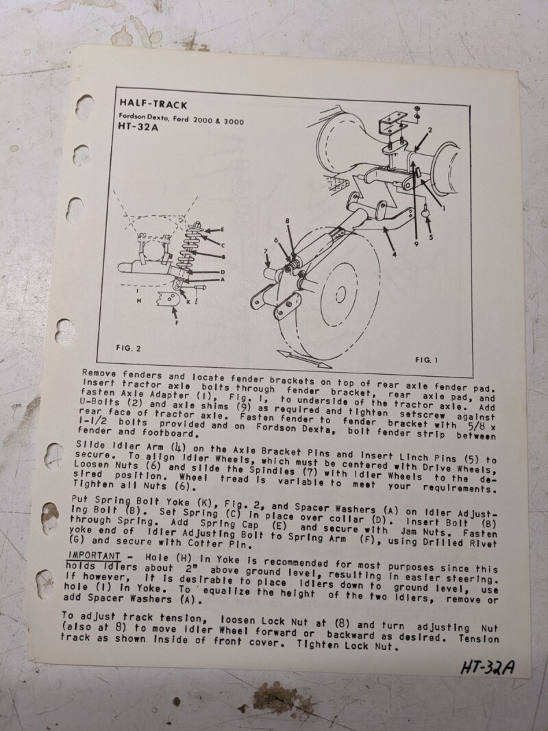 Arps Half Track Axle Adapter Part List Fordson Dexta 2000 3000 Tractor Ht-32A