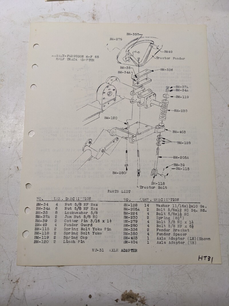 Arps Half Track Axle Adapter Part List Massey Ferguson M F 65 Tractor Ht-31