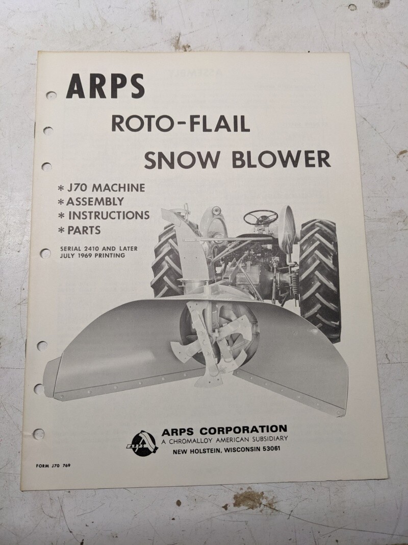 Arps Owners Manual Parts List Book J70 Roto-Flail Snow Blower 769 1969