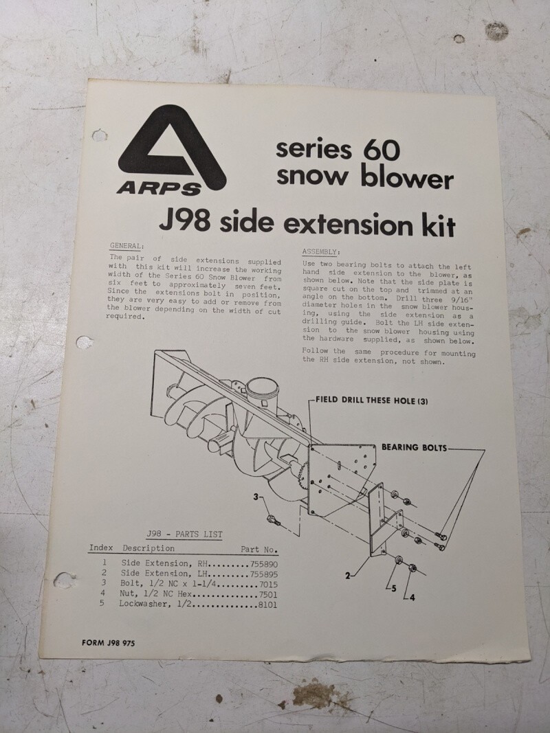 Arps Owners Manual Parts List Book Series 60 Side Extension Kit J98 975