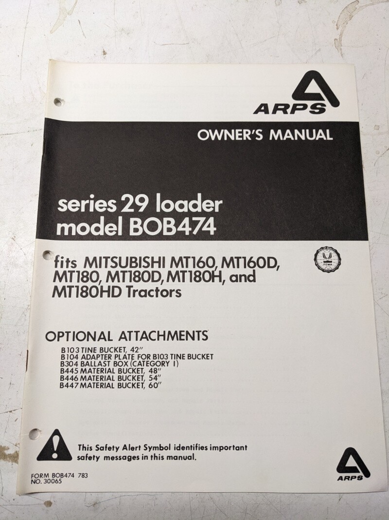 Arps Owners Manual Series 29 Loader Model Bob474 Mitsubishi Mt 160 180 D H Hd