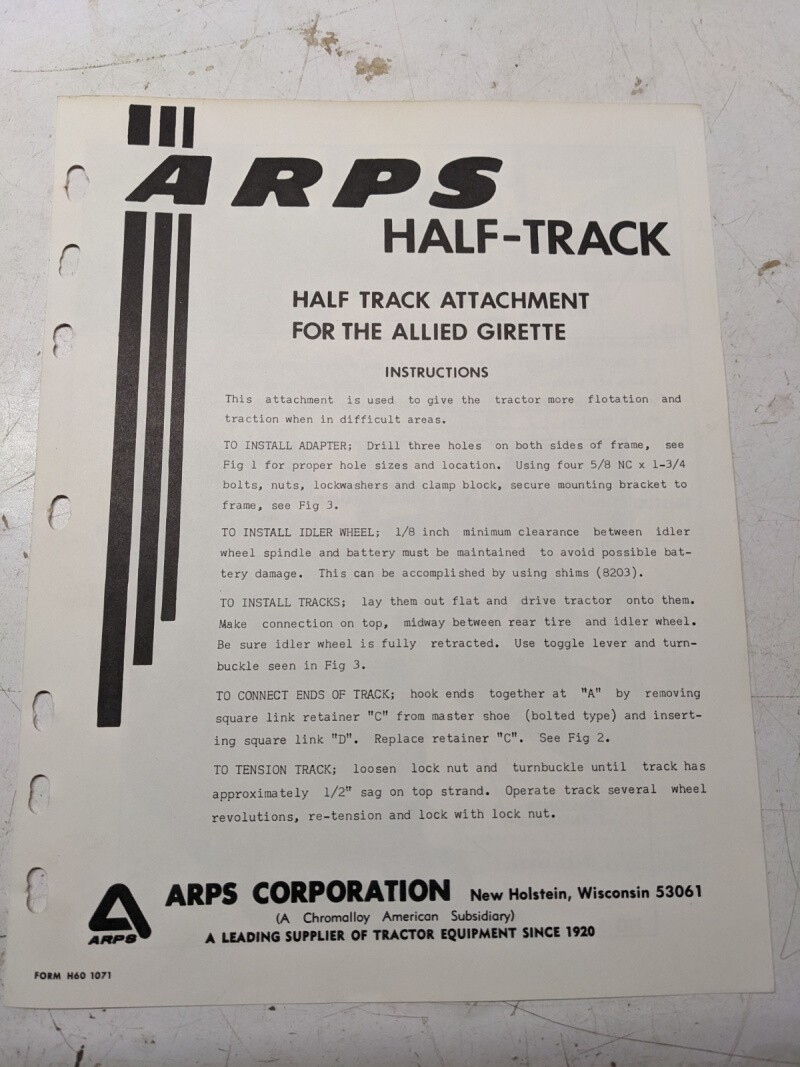 Arps Tractor Half-Track Axle Adapter Instructions Parts List Allied Girette