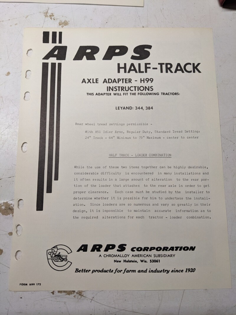 Arps Tractor Half-Track Axle Adapter Instructions Parts List H99 Leyand 344 384
