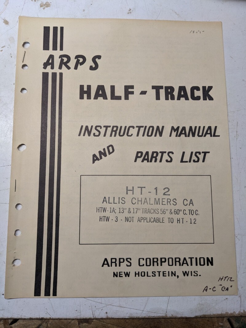 Arps Tractor Half-Track Instruction Owner Manual Parts List Allis Chalmers Ca
