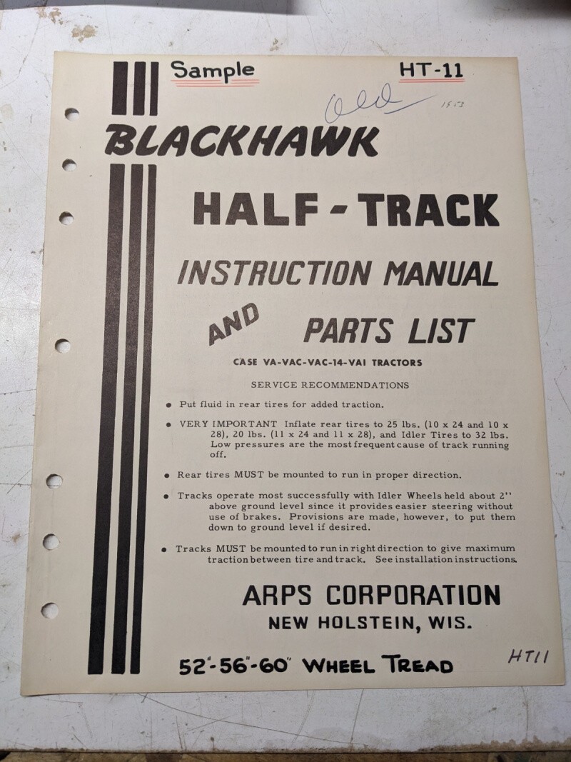 Arps Tractor Half-Track Instruction Owner Manual Parts List Case Va Vac 14 Ht11