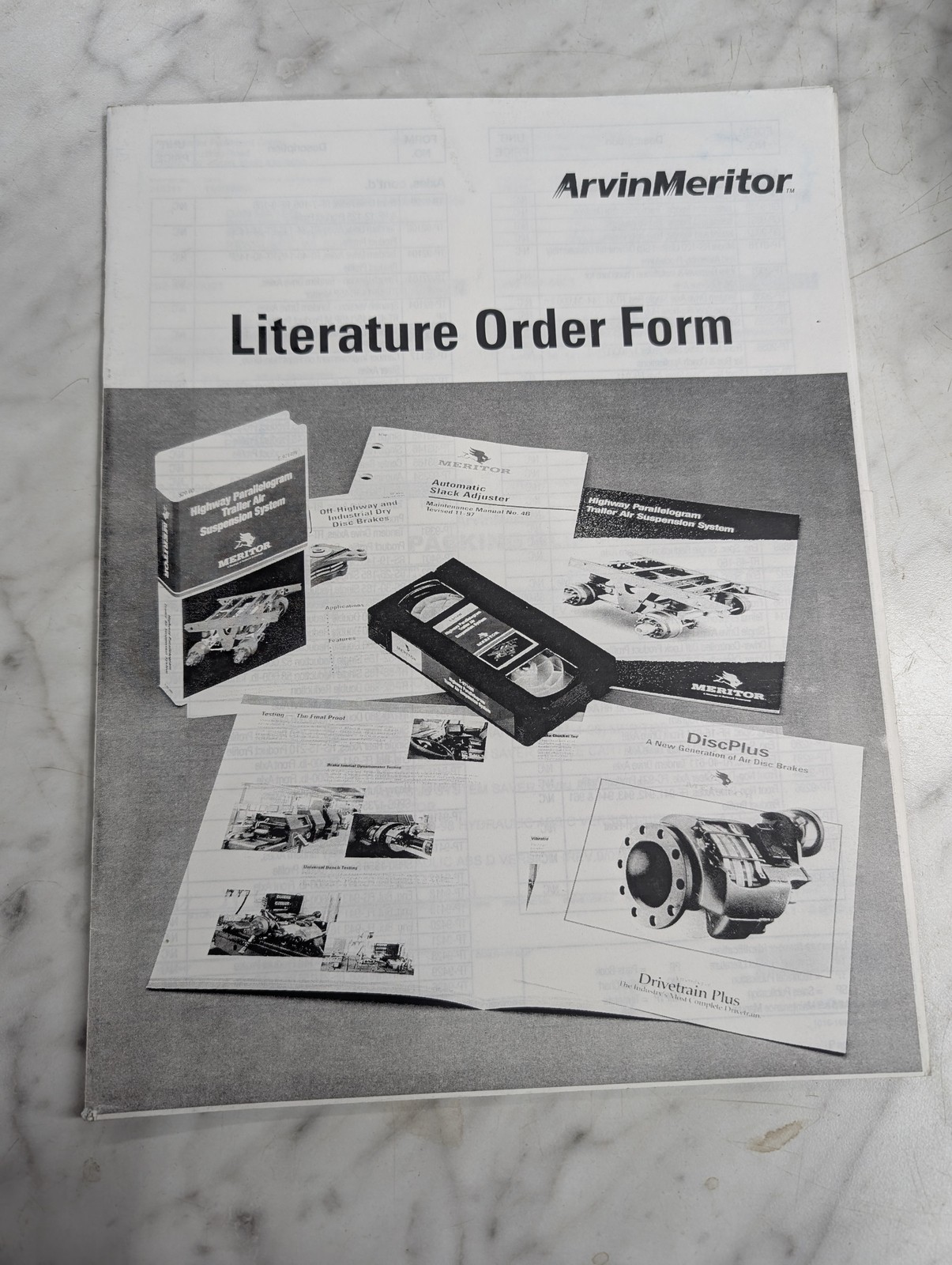 Arvin Meritor Literature Order Form Sales Brochure Catalog ~Service Manual List