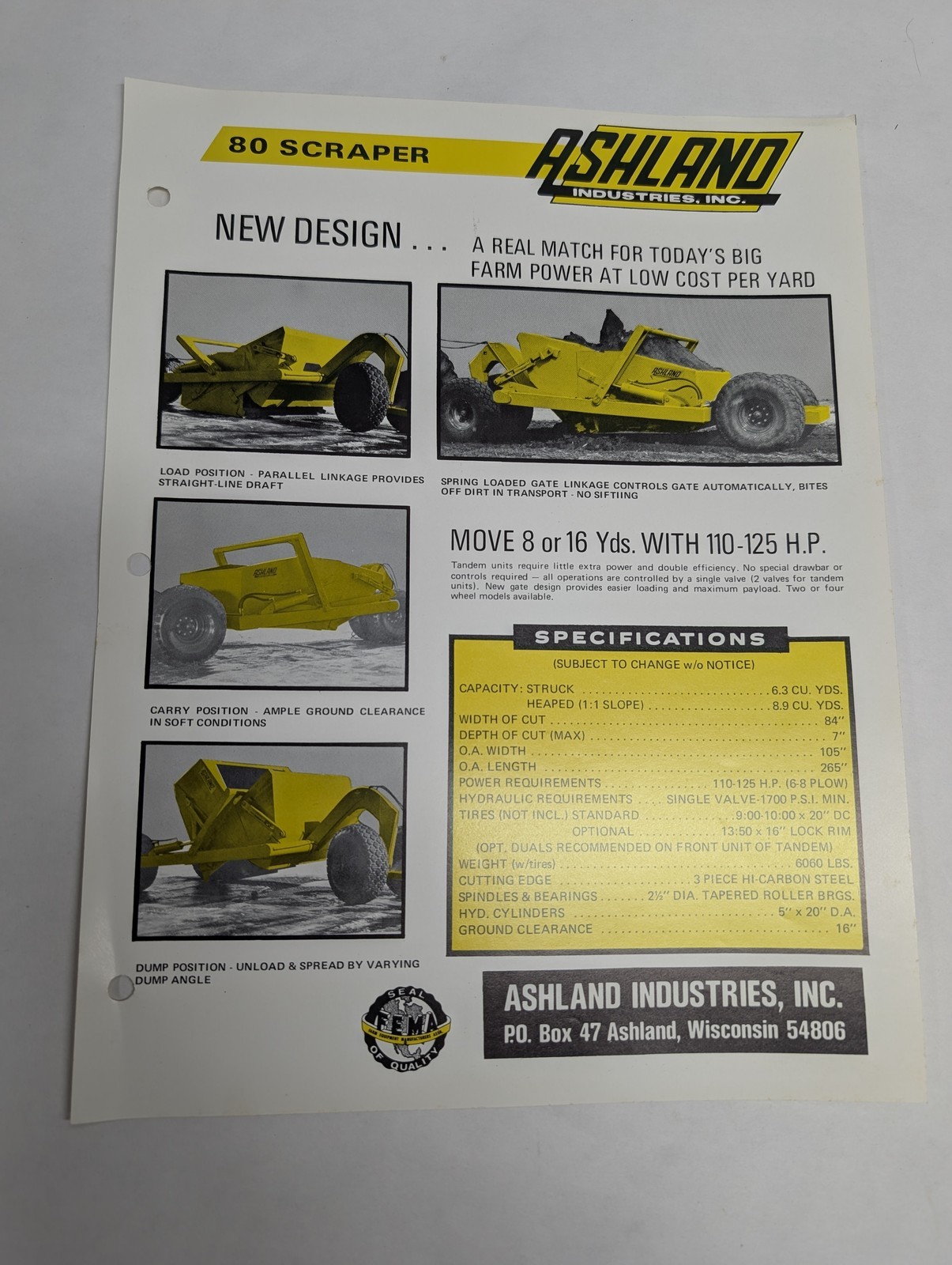 Ashland Industries Sales Information Sheet Brochure Literature Model 80 Scraper