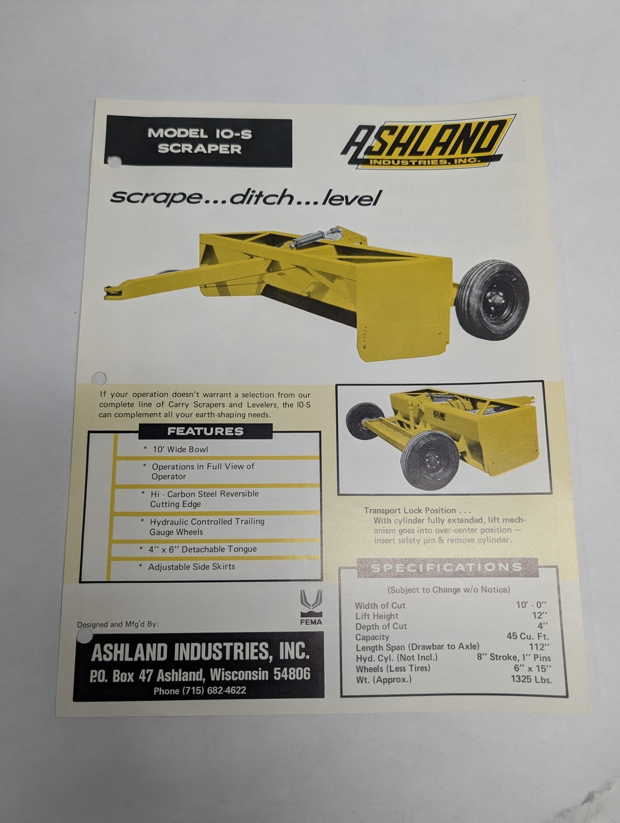 Ashland Sales Brochure Literature Specifications Sheet 10-S Scraper