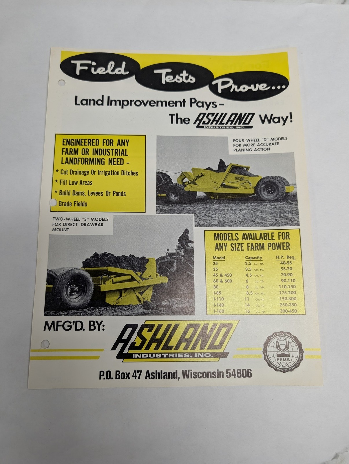 Ashland Sales Brochure Literature Specifications Sheet Various Models