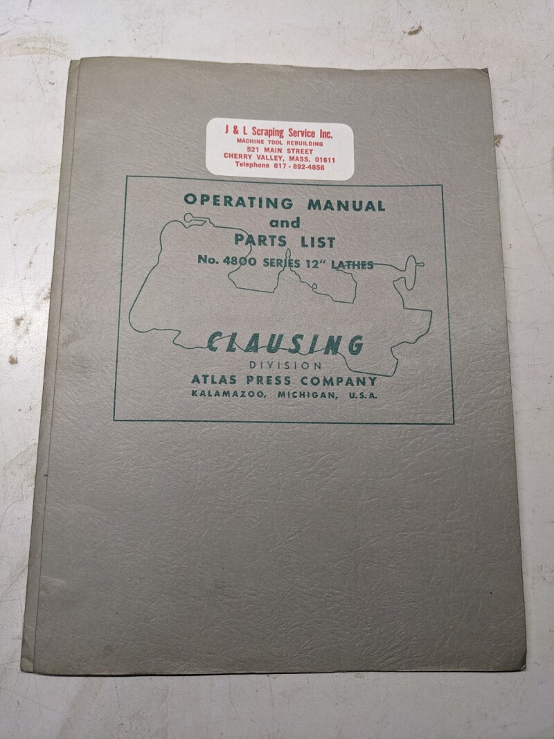 Atlas Clausing Instruction Operator Service Manual Parts List Lathes #4800 12”