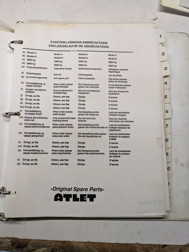 Atlet Service Repair Spare Parts List Book Manual Model A B 020 030 Ls Master