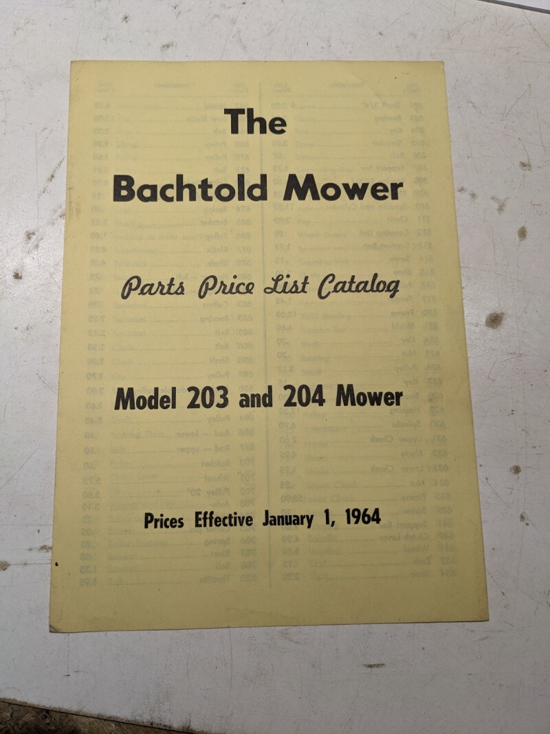 Bachtold Mower Parts Price List Catalog Model 203 204 Lawn Care 1964