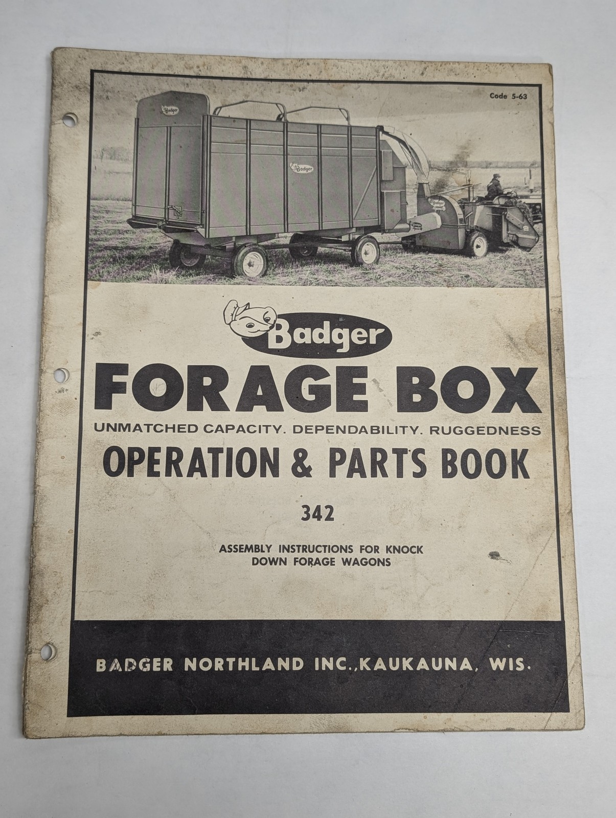 Badger Operator’S Manual Parts Book Catalog Forage Wagons Model 342