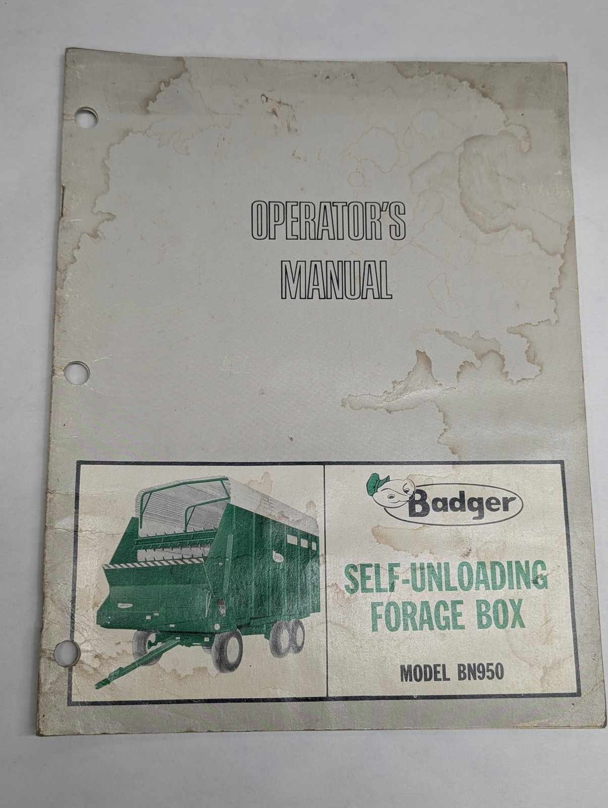 Badger Operator’S Owners Instruction Manual Self-Unloading Forage Box Bn950
