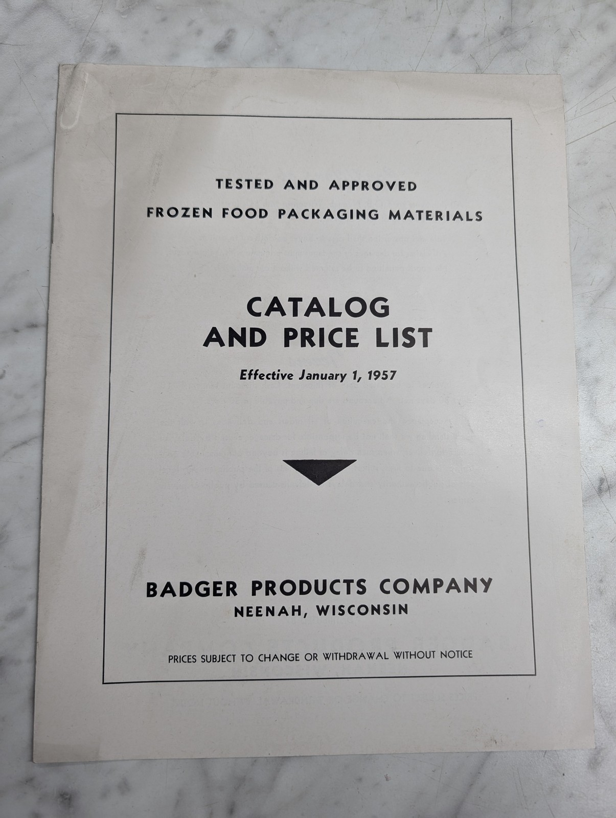 Badger Products Catalog & Price List 1957 Approved Frozen Food Packing Materials