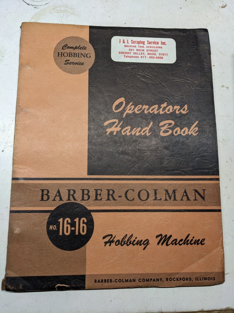 Barber-Colman Hobbing Machine Operator Manual Service Gear Tables #16-16 1947