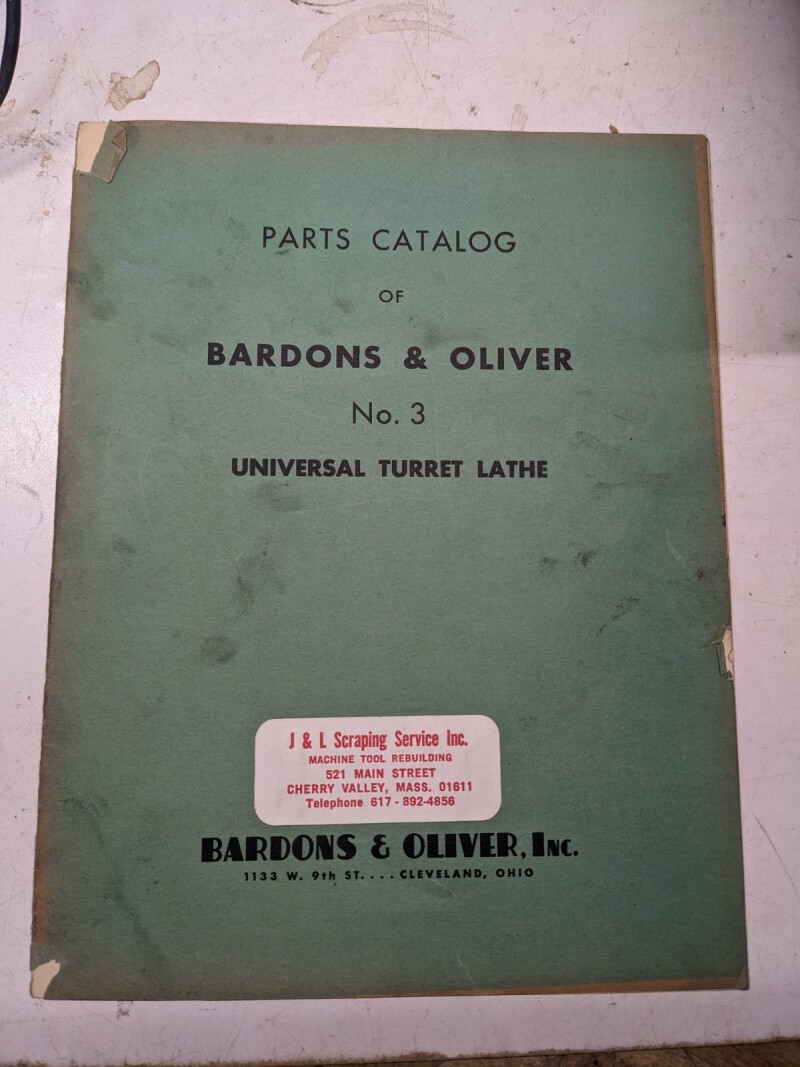 Bardons Oliver #3 Universal Turret Lathe Service Parts List Manual Catalog Shop