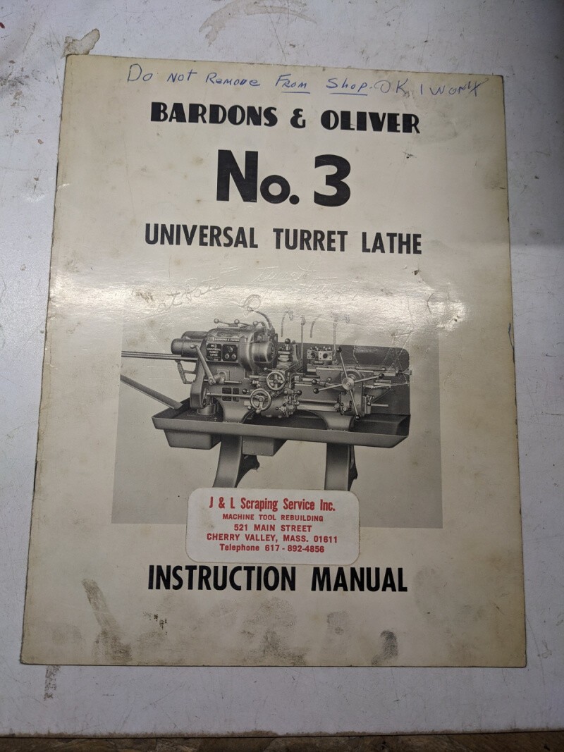 Bardons Oliver Operator Service Maintenance Manual Lathe #3 1958 Shop Book