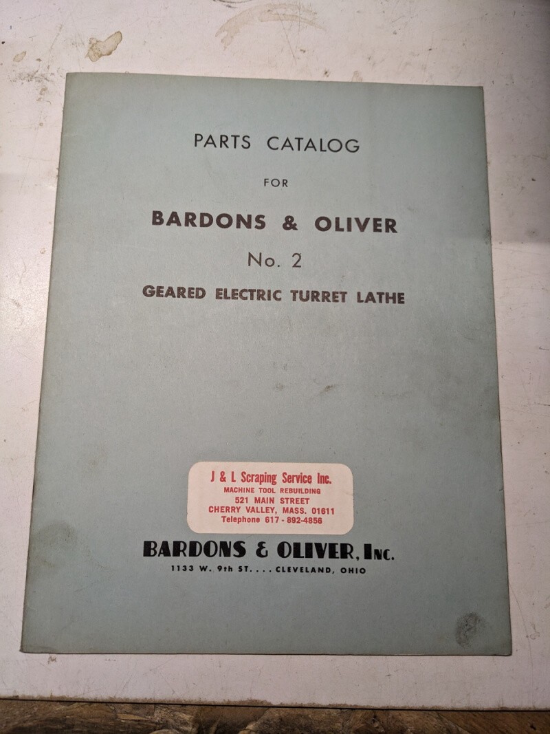 Bardons Oliver Service Parts List Book Catalog Manual #2 Turret Lathe 1948 Shop