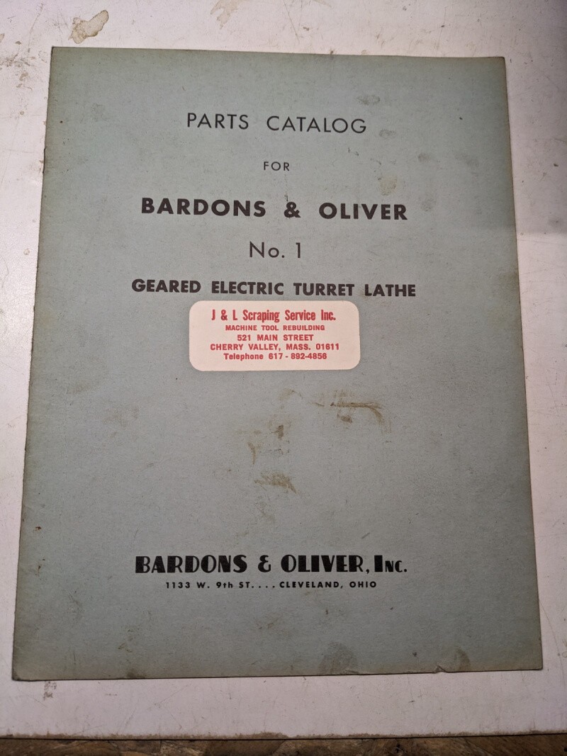 Bardons Oliver Service Parts List Shop Book Catalog Manual #1 Elec Turret Lathe