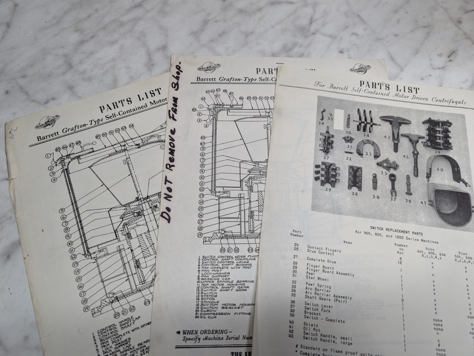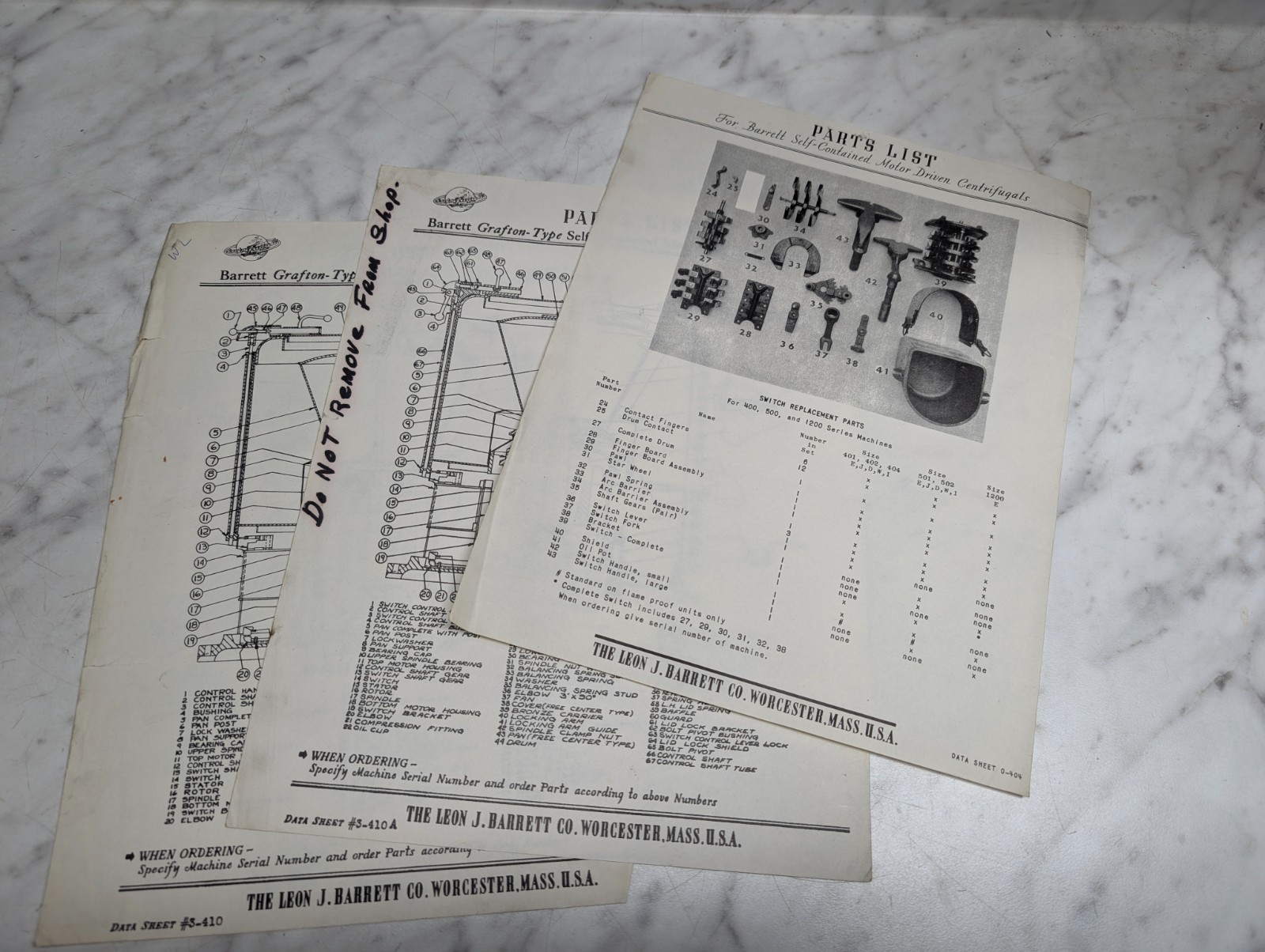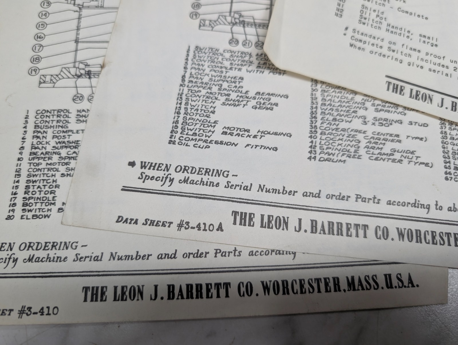 Barret Grafton Machine Tool Part Information Data Sheets 3-410 Centifugals