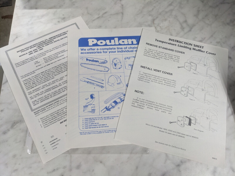 Beaird-Poulan Chain Saw Warranty, Accessories & Instruction Page