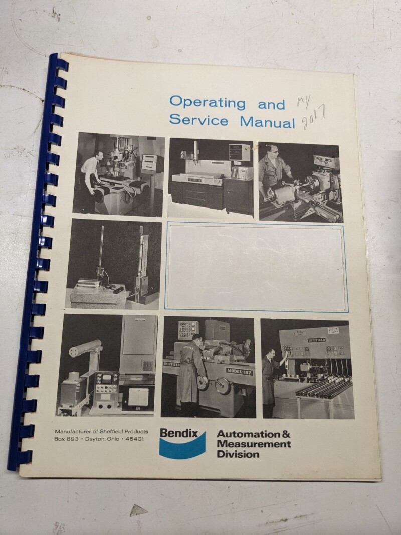 Bendix Operating Service Manual Sheffield Model 110 Crushtrue Grinder Book