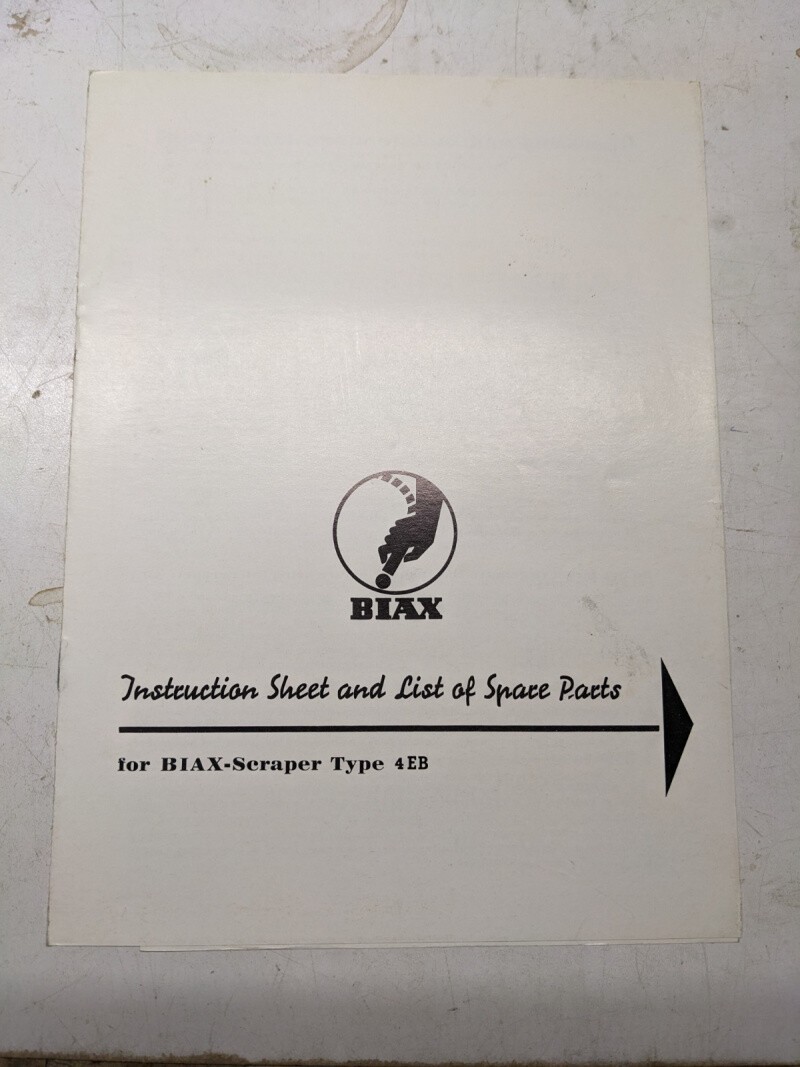 Biax Scraper Type 4 Eb Instruction Sheet Service Parts List Book Manual 1969