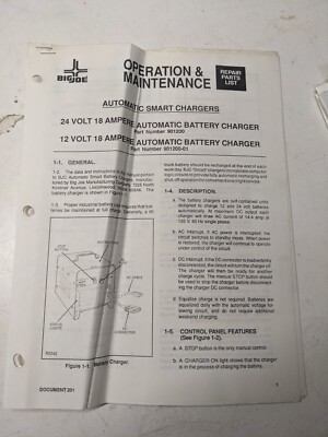 Big Joe Lift Truck Operating Maintenance Parts List Manual 901200 -01 Charger