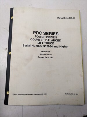 Big Joe Lift Truck Operating Maintenance Parts List Manual Pdc Series Pdc1193