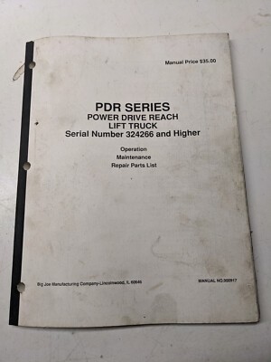 Big Joe Lift Truck Operating Maintenance Parts List Manual Pdr Series Pdr0491