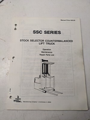 Big Joe Lift Truck Operating Maintenance Parts List Manual Ssc Series Ssc0287