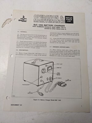 Big Joe Lift Truck Operating Maintenance Parts Manual Bjc 1265 Battery Charger