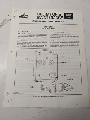 Big Joe Lift Truck Operating Maintenance Parts Manual Bjc 24-40 Battery Charger