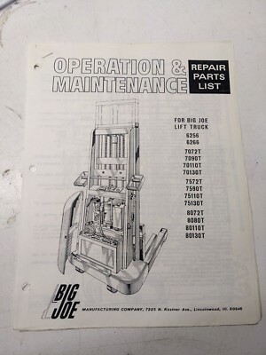 Big Joe Operating Maintenance Parts List Manual 6256 7072-70130T 8072-80130T