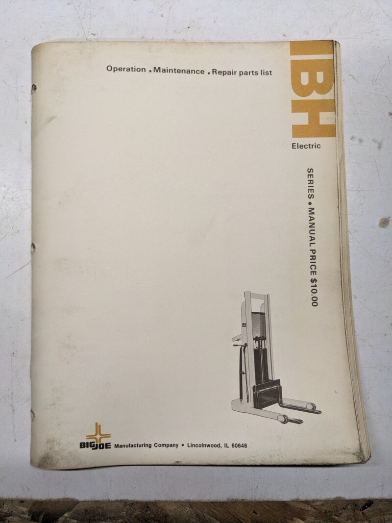 Big Joe Operation Maintenance Repair Parts List Service Manual Ibh Electric