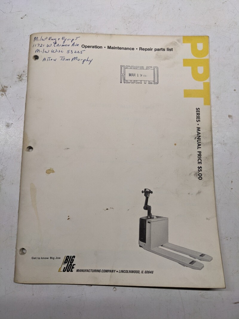 Big Joe Operation Maintenance Repair Parts List Service Manual Ppt Series 1973