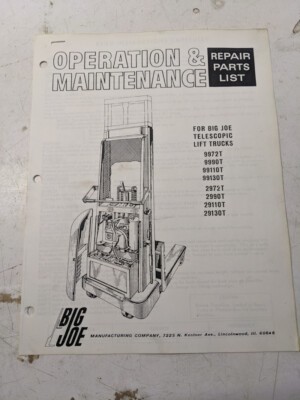 Big Joe Operations Maintenance Repair Parts List Book Manual 9972T 99130T 29130T