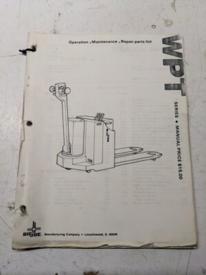 Big Joe Wpt Series Operation Maintenance Repair Parts List Manual