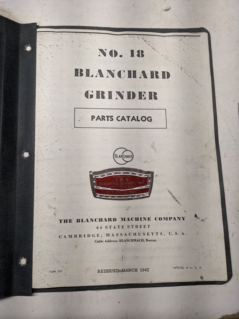 Blanchard Grinder Service Parts List Book Manual Catalog Shop #18 1942 Copy 210