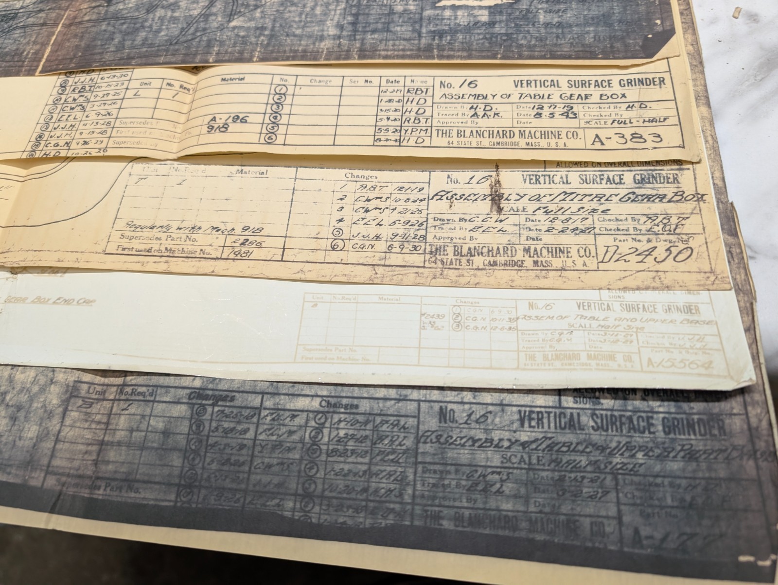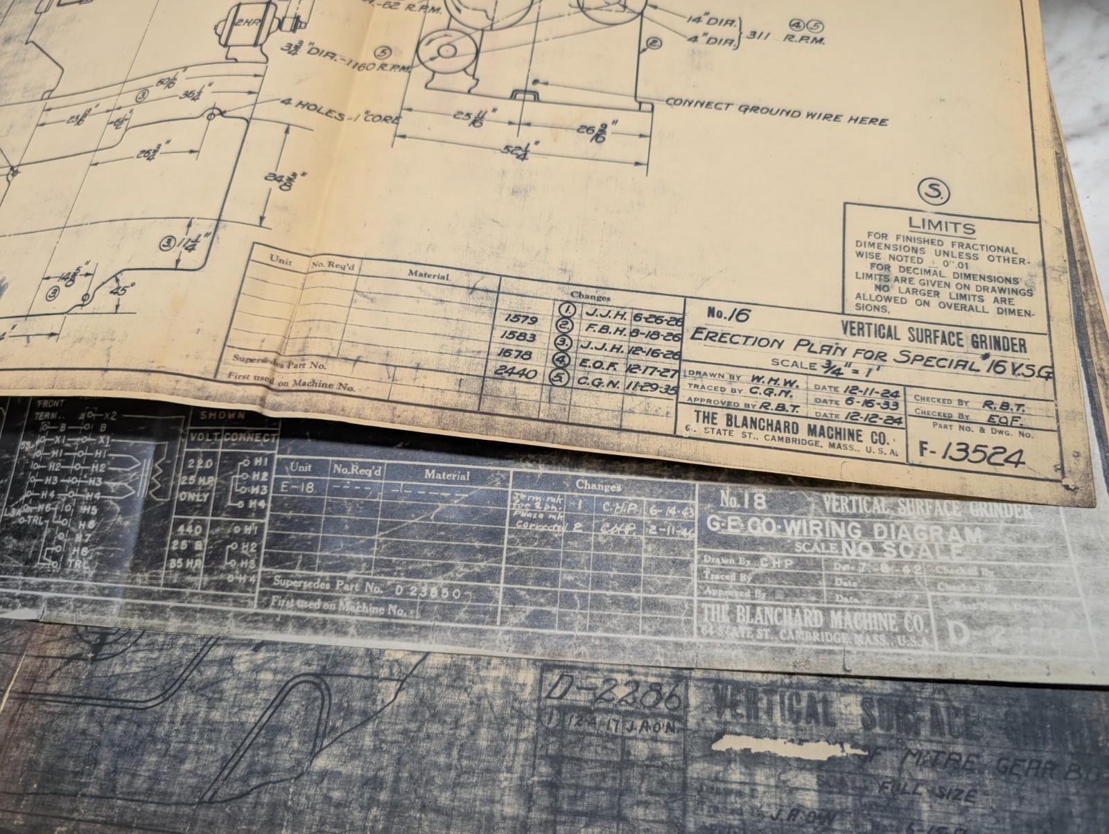 Blanchard Machine Tool Vertical Surface Grinder Blue Print Drawing Diagram 16